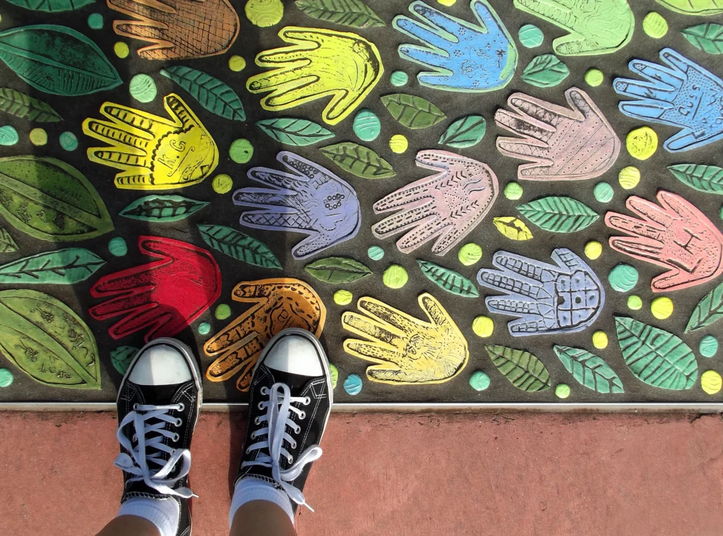 Slip-resistant floor stickers for retail and wayfinding applications.